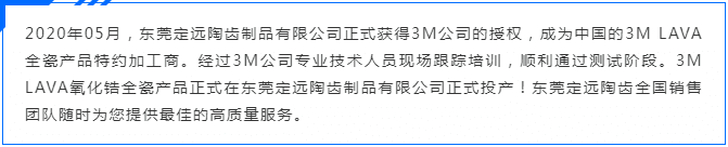 熱烈祝賀東莞定遠陶齒"3M LAVA氧化鋯全瓷產品"正式投產